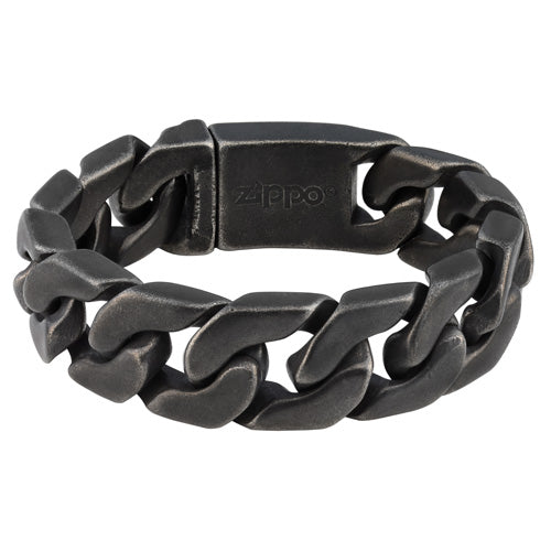 Αυτό το βραχιόλι αντίκα με τις χονδροειδείς ζεύξεις έχει μια εντυπωσιακή εμφάνιση. Το βραχιόλι διαθέτει επίσης κούμπωμα ασφαλείας χαραγμένο με το όνομα Zippo και τη φλόγα και διατίθεται σε συσκευασία δώρου.