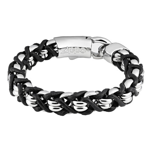 Κομψότητα! Το γυαλισμένο ανοξείδωτο ατσάλι συναντά το μαλακό και ανθεκτικό δέρμα για τη δημιουργία μπλεγμένων δακτυλίων. Ότι πρέπει για κάθε περίσταση. Το χοντρό κούμπωμα του προσθέτει ένα ασφαλές κράτημα και είναι χαραγμένο με τη φλόγα και το όνομα Zippo. Έρχεται συσκευασμένο σε ένα κουτί δώρου.