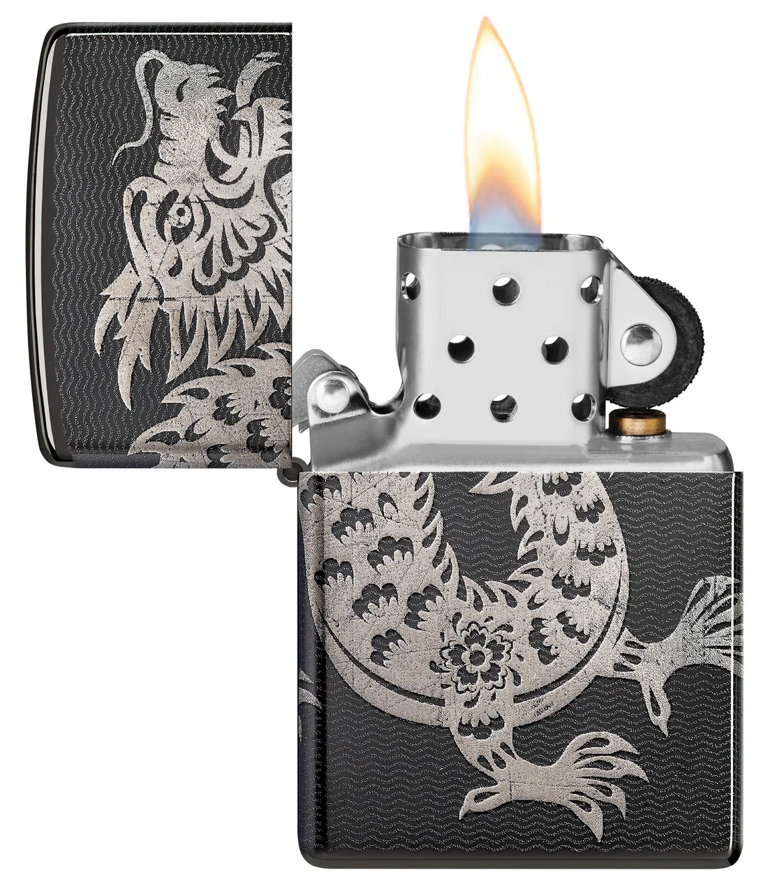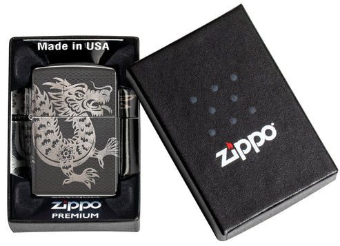 Ένας παραδοσιακός κινέζικος δράκος ηγείται σε όλες τις πλευρές αυτού του κλασικού High Polish Black αναπτήρα σε περίπλοκη σχεδίαση Photo Image 360°. Διατίθεται συσκευασμένο σε συσκευασία δώρου. Για βέλτιστη απόδοση γεμίστε με καύσιμο αναπτήρα Zippo.