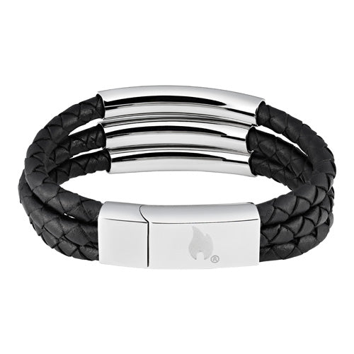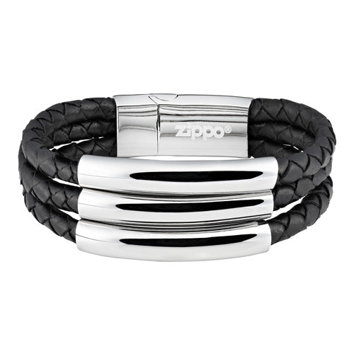 Προσθέστε μια σύγχρονη πινελιά σε κάθε εμφάνιση με αυτό το δερμάτινο, τρίπτυχο, πλεκτό βραχιόλ. Το βραχιόιλι αποτελείται από τους τρεις ιμάντες, ο καθένας διακοσμημένος με ένα κρίκο από ανοξείδωτο ατσάλι. Το κούμπωμα του βραχιολιού εξασφαλίζει την ασφαλή συγκράτηση μέσω ενός ενσωματωμένου μαγνήτη. Με την εικονική φλόγα Zippo χαραγμένη στο μπροστινό μέρος του κουμπώματος και το όνομα Zippo χαραγμένο στο πίσω μέρος. Διατίθεται σε συσκευασία δώρου.